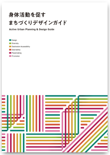 では、歩行を促す都市とはどのようなものか。国内外の先行研究を踏まえて開発した『身体活動を促すまちづくりデザインガイド』では、歩行を促す都市の要素を4つのDと2つのPで整理しました。歩⾏者志向のデザイン(Design)、⼟地利⽤等の多様性(Diversity)、目的地へのアクセス性(Destination accessibility)、安全性等の魅力創出(Desirability)、プレイス・メイキング(Placemaking)、ソフト面での促進活動(Promotion)です。