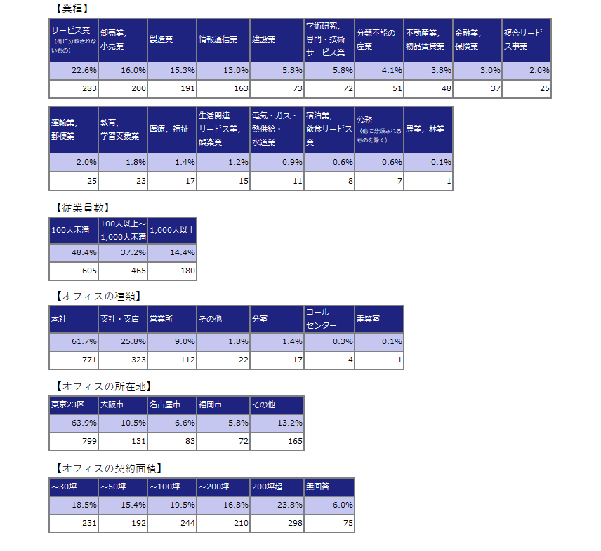 - 38.3%の企業が、入居中のオフィスを手狭だと感じている。