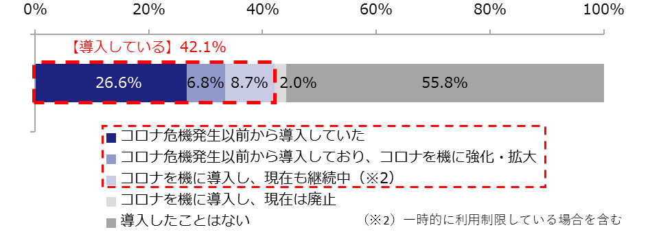 【参考1】在宅勤務を導入している企業の割合(「その後廃止」も含む)