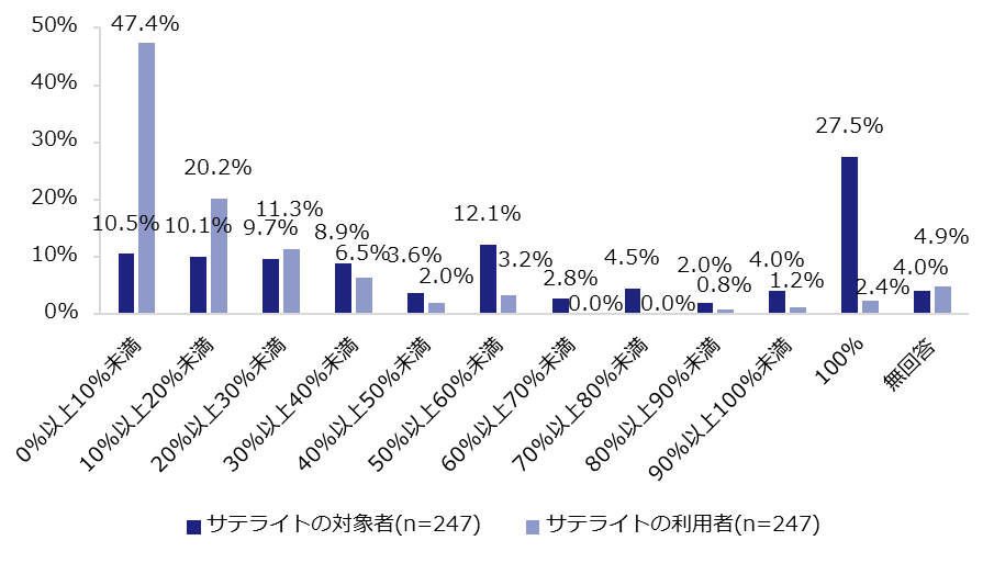 【図表12】サテライトオフィスの対象者と利用者の割合(ヒストグラム)