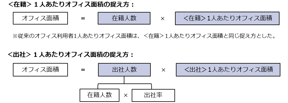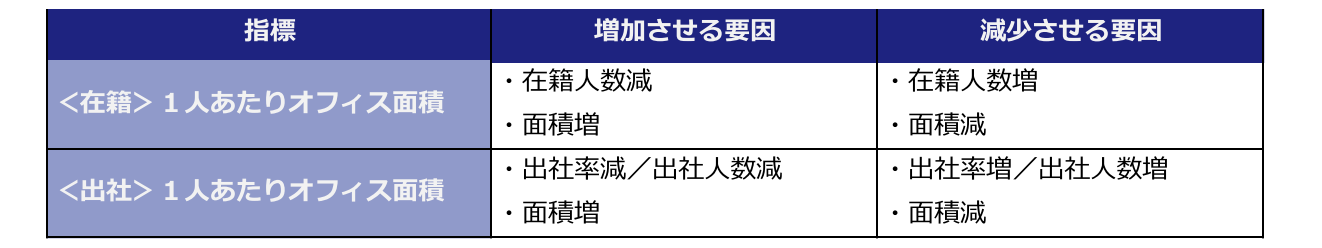 本レポートでは、在籍人数および出社人数それぞれの1人あたりオフィス面積について公表した。