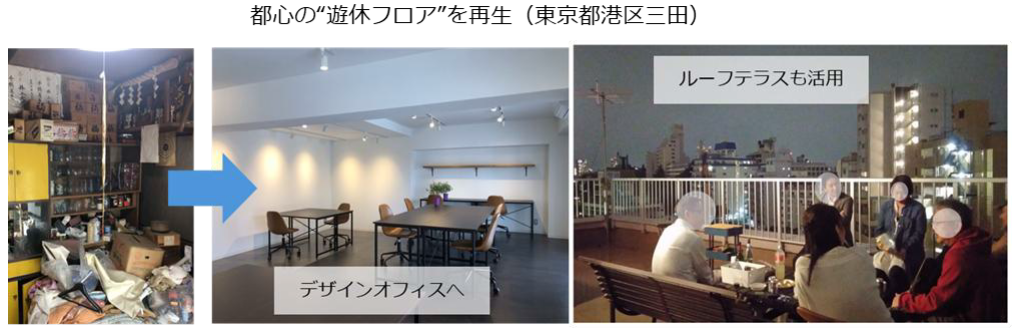 東京都港区の西麻布にあるビルでは、空室が続いた1フロアと屋上を賃借し、約2,300万円を投じて改修を実施し、複数社のシェアオフィスとして転貸している。投資回収にかかった期間は約3年である。