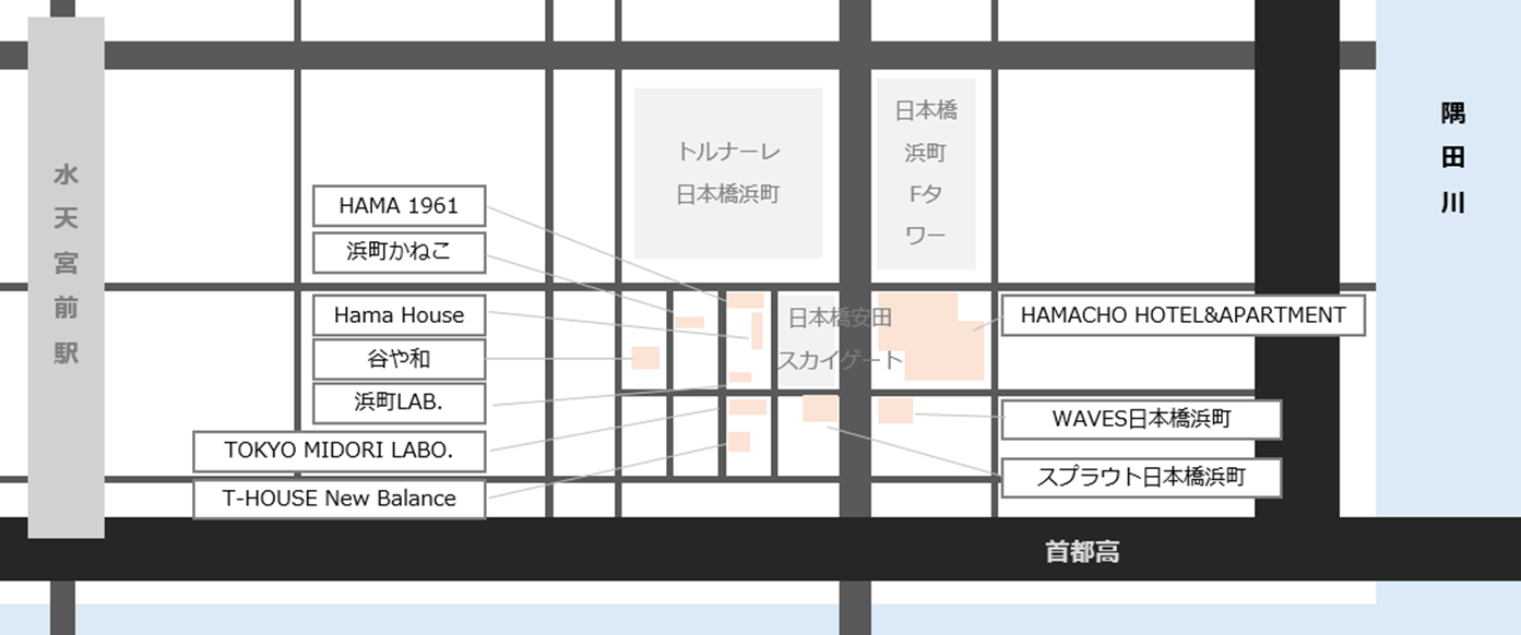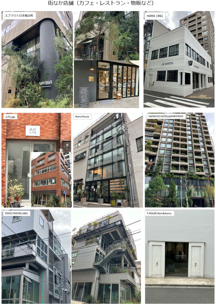 さらにこのエリアでは、物販店や飲食店、LABO、ホテルなど多様な用途の店舗が集積し、来街者の滞在時間を伸ばすまちづくりが進んでいる。その背景には、個性あるセレクトショップや地域性を生かした専門店を点在させることで、日本橋浜町を拠点とした回遊性の向上に寄与している。これらの施設が相互に連携し、働く・暮らす・訪れる人々が交差する、魅力あるエリア形成が実現している。