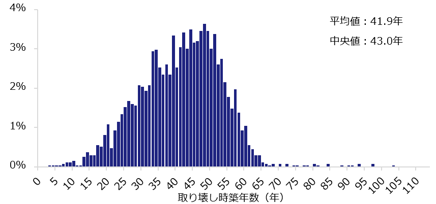 【図表3】取り壊し物件の築年数ヒストグラム