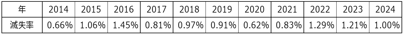 【図表4】東京23区オフィス物件の年間滅失率(2014-2024年)