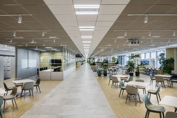 2022年11月、現オフィスでの業務が開始された。移転から2年以上経ち、コロナ禍が落ち着いてきた現在も出社率に大きな変化はなく、出社人数は常時300~400人程度だという。打合せの多さなどで部署によってやや偏りがあるものの、在宅勤務型の社員は多い人でも週2日程度の出社にとどまり、社長を含む経営層も同様にテレワーク中心の働き方を継続している。経営層自らが実践してみせることで、従業員の意識改革にもつながっているのかもしれない。「最初は新しい働き方に戸惑う社員もいましたが、実際に経験してみるとメリットを感じるようです。特に若手社員は、今から完全出社に切り替えるのは難しいでしょう。採用の段階でも、テレワーク中心の働き方は学生からの反応が良く、アピールポイントになっています」(丸山氏)。